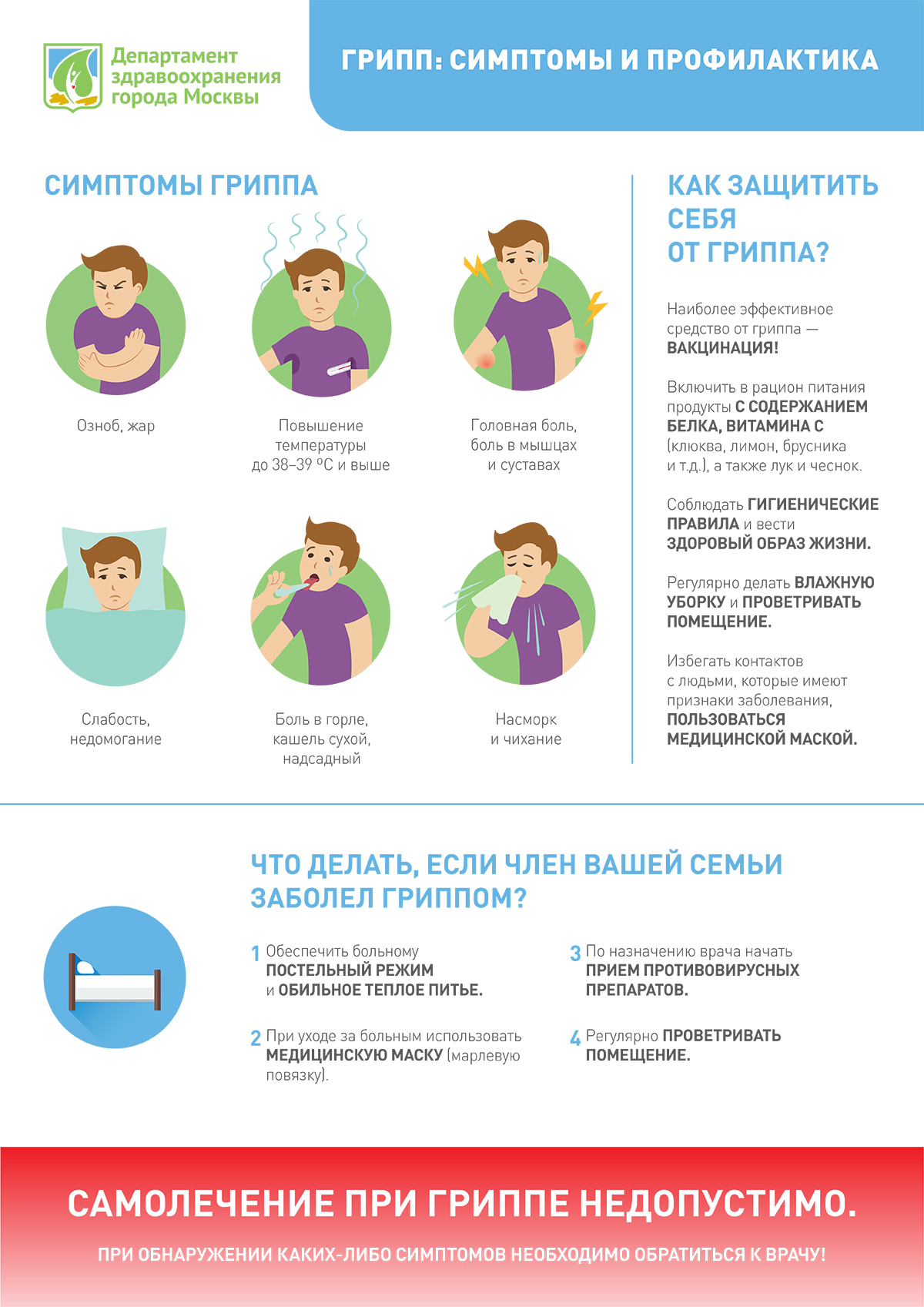 Если же избежать заражения не удалось, при первых симптомах, а именно — подскочившей температуре — немедленно обращайтесь к врачу-терапевту поликлиники. Он поставит правильный диагноз и назначит грамотное лечение.