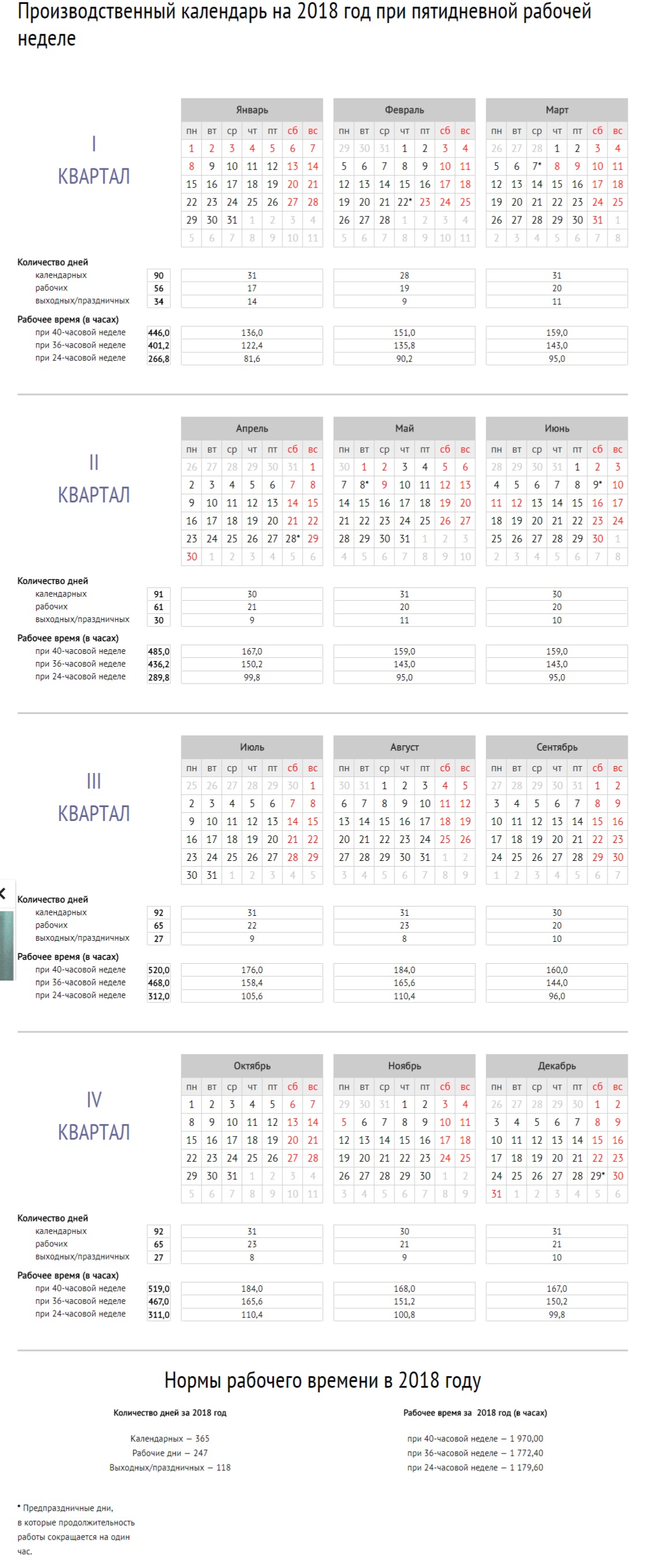 Норма рабочего времени в 2018 году в целом составит:• при 40-часовой рабочей неделе — 1 970 часов