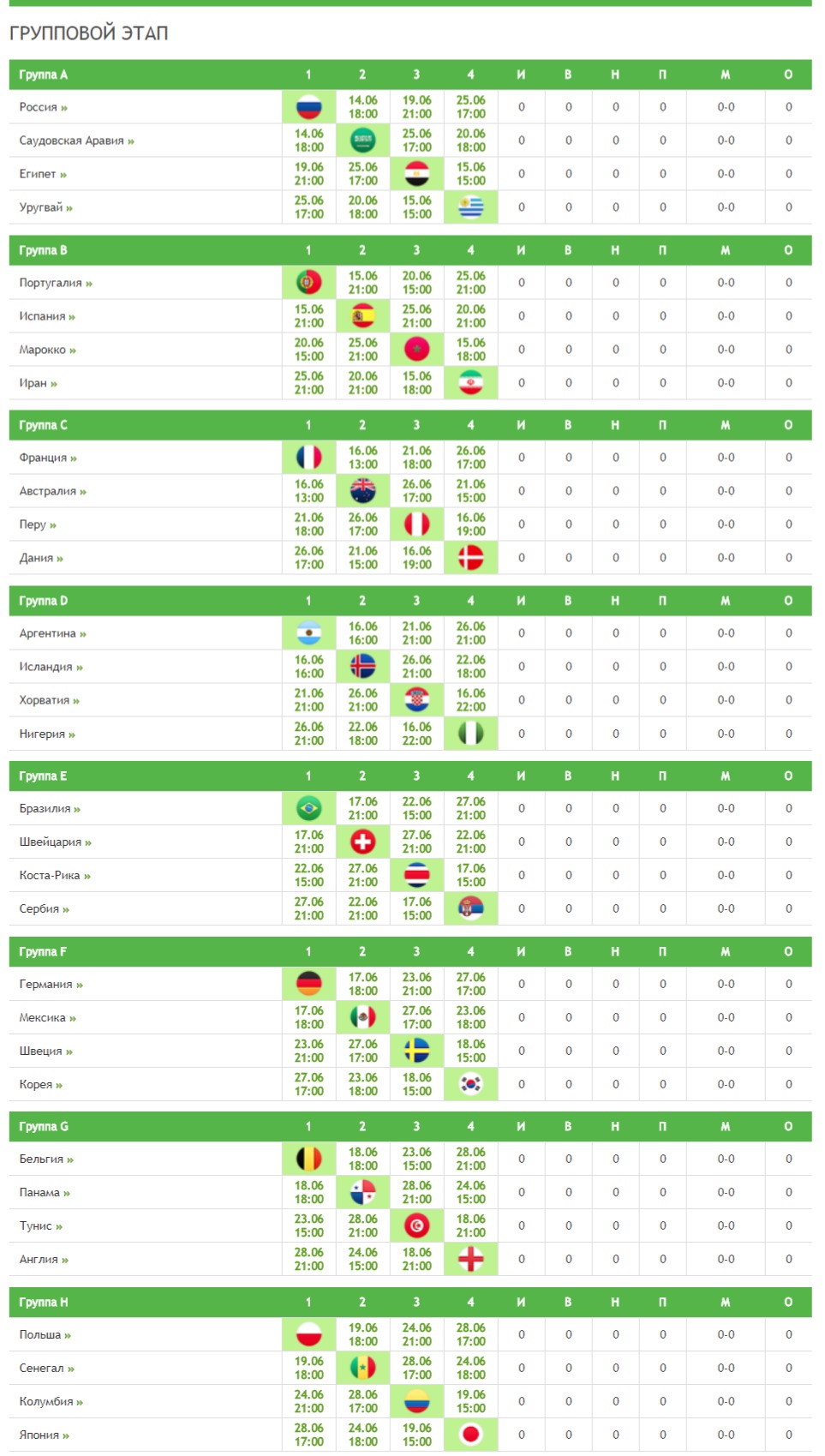 Чемпионат мира-2018. Полный календарь матчей с таблицами и плей-офф.