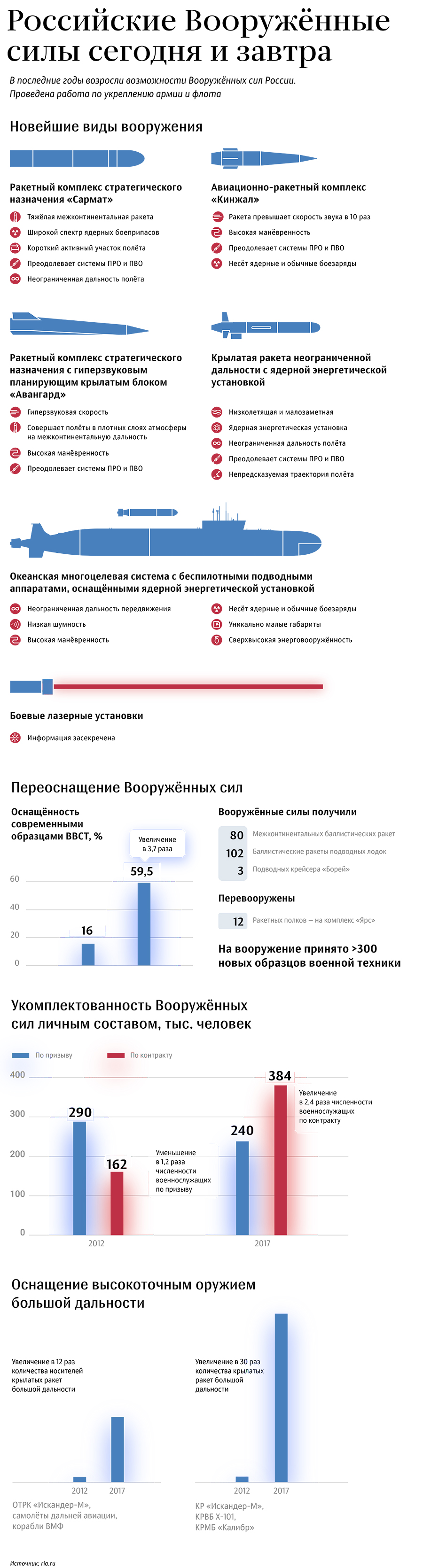 Ну и, наконец, 1 марта президент РФ официально объявил о существовании сразу нескольких новых классов стратегических вооружений. Неофициально о большинстве из них было известно и ранее, но одно дело догадки, другое — презентация на высшем уровне.