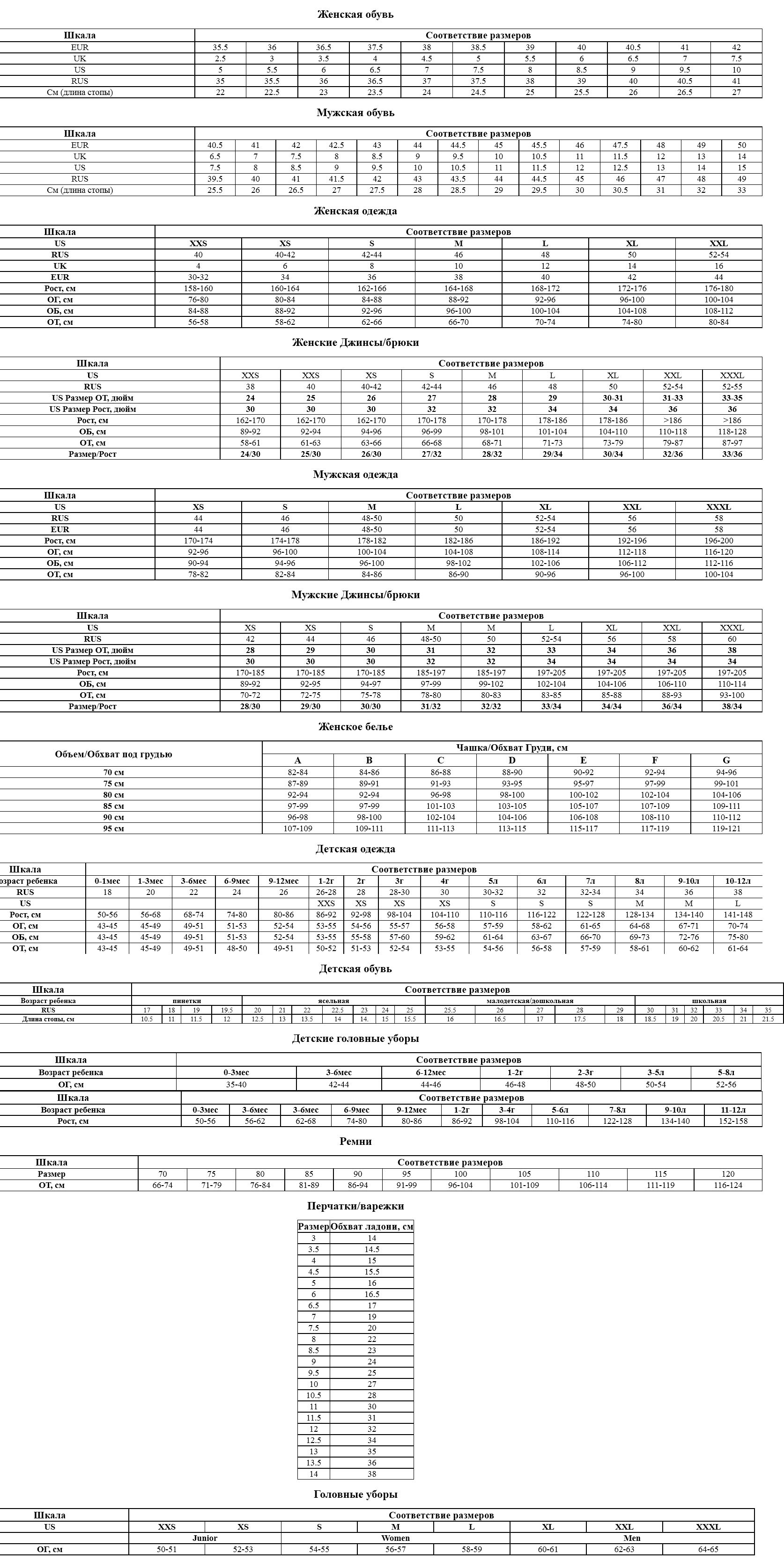 Таблица размеров одежды и обуви.В формате MS Word можно скачать ЗДЕСЬ. (картинка кликабельна)
